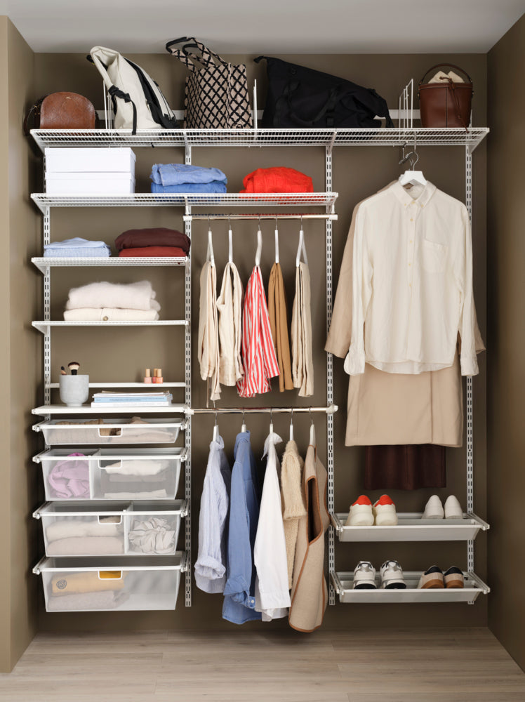 Organisez votre garde-robe avec élégance grâce à la gamme Classic de Elfa. Notre solution de rangement ouverte et modulable s'adapte à vos besoins spécifiques, offrant un accès facile et une vue d'ensemble de vos vêtements. Transformez votre espace en un dressing intelligent, esthétique et pratique.