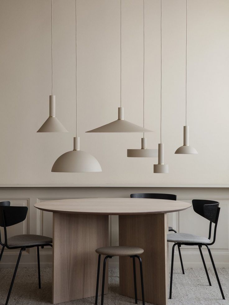 Meubles aux lignes épurées et formes simples, souvent multifonctionnels, en matériaux naturels et couleurs neutres.