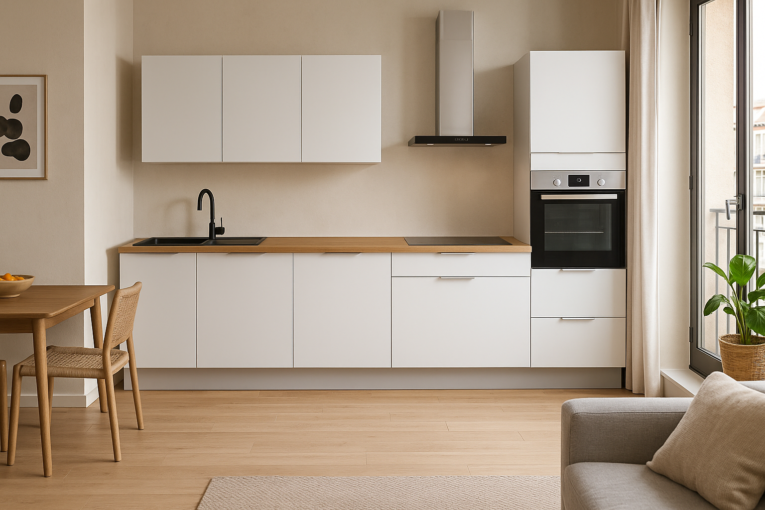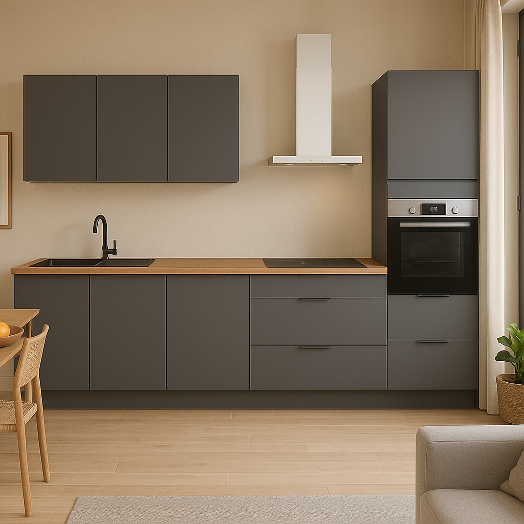 Moderne, compacte et accessible, cette cuisine prête à poser a été pensée pour tous les espaces et tous les budgets.