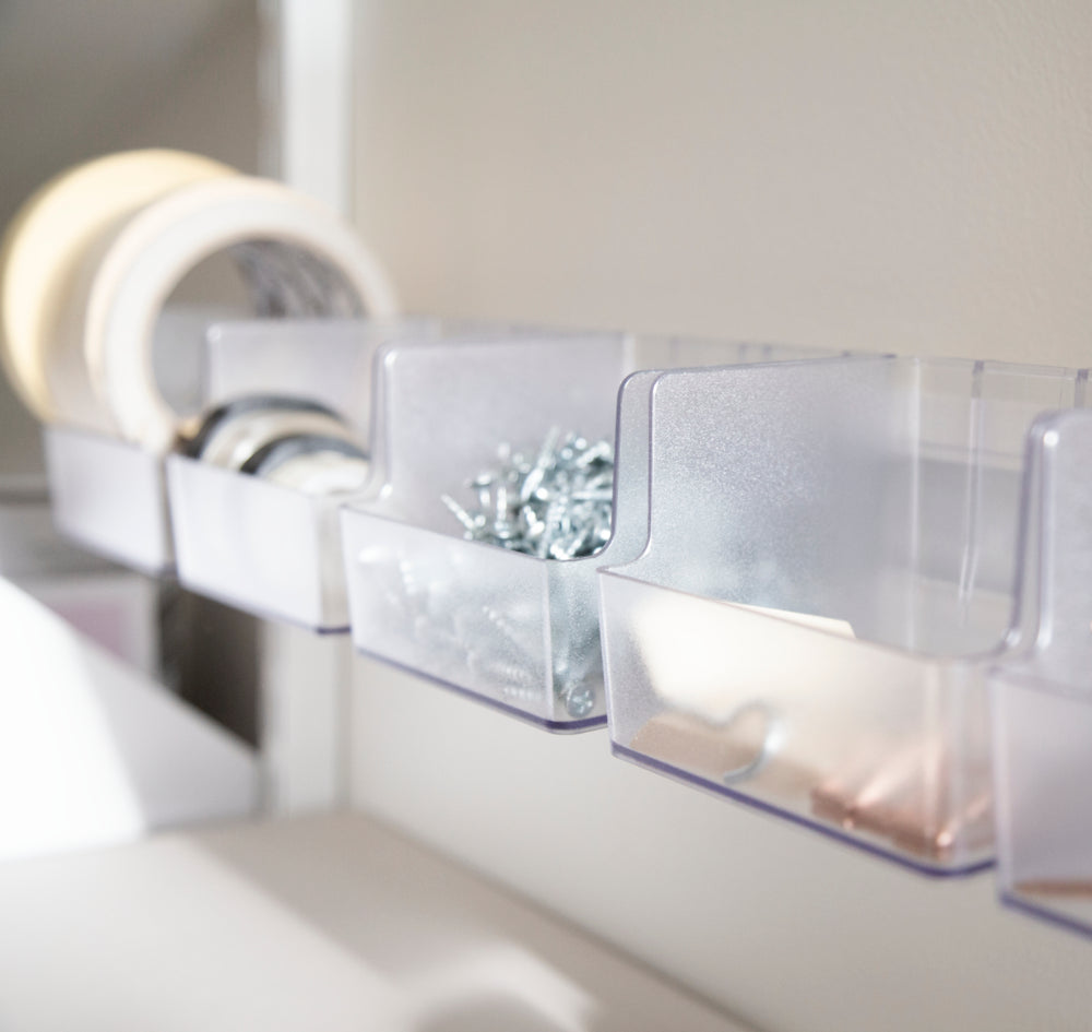 Vous pouvez compléter la solution avec des accessoires tels que des étagères en mélamine encliquetables pour plus de rangement.
